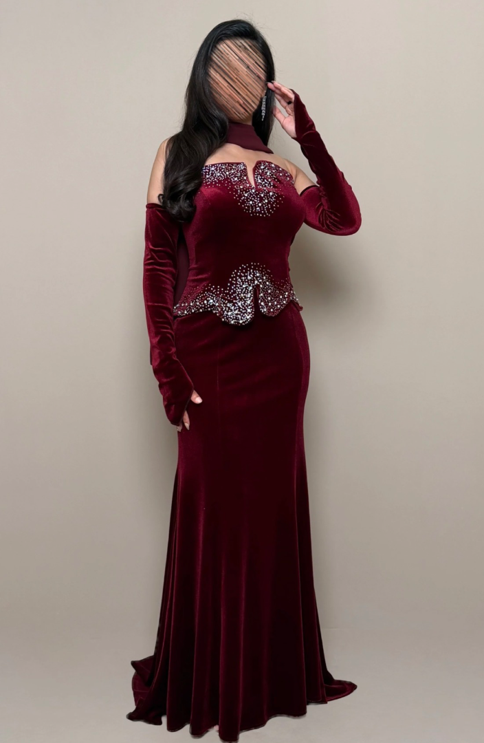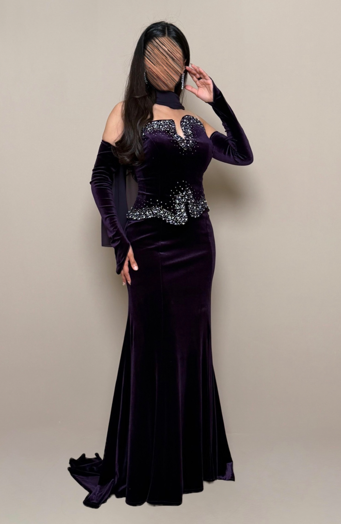 الألوان الخاصة بالفستان : خمري - بنفسجي - بني